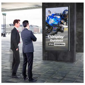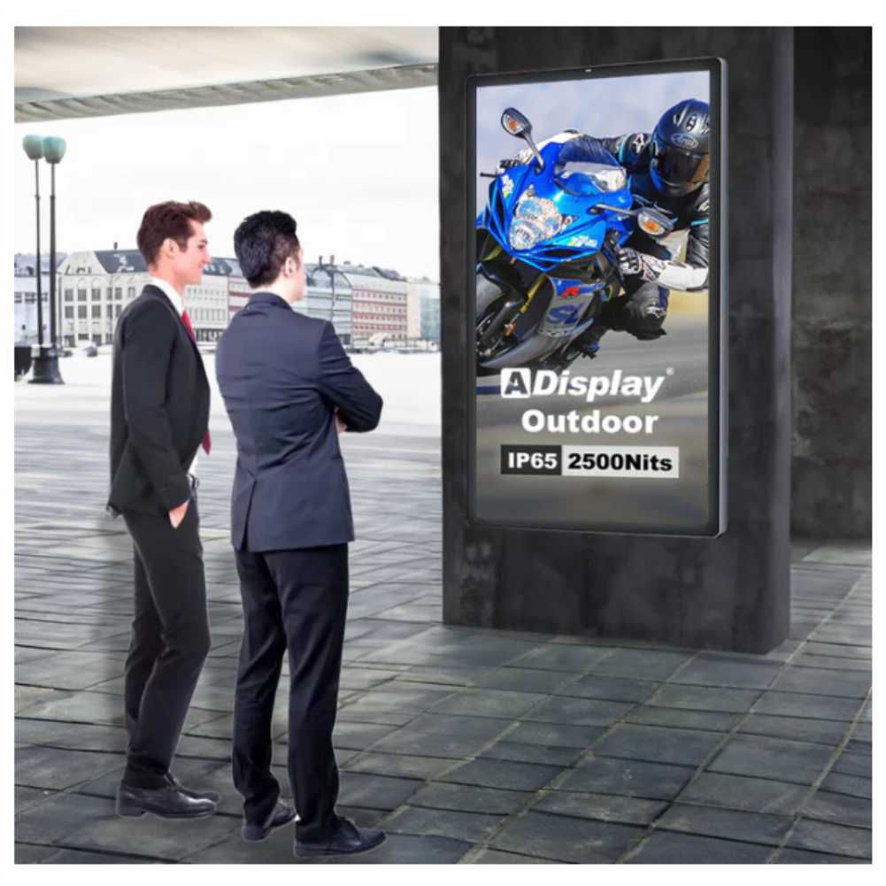 ADisplay 65″ Outdoor Digital Signage er den ideelle løsning til udendørs reklame, information og præsentationer. Med imponerende funktioner som høj lysstyrke, holdbarhed i alle vejrforhold og avancerede tilslutningsmuligheder er denne skærm en pålidelig og alsidig løsning, der imødekommer behovene i enhver udendørs applikation.
