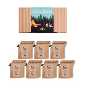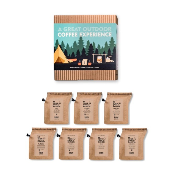 7 stk. Outdoor gaveæske indeholder 7 Coffeebrewers med specialkaffe fra 7 forskellige kaffeplantager: Colombia, Brazil, Guatemala, Honduras, Ethiopia, Costa Rica, Kenya.